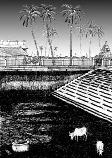 ガンジス河なら水に流してくれるから問題ないが、ATTAMA SITHTHIはちっぽけな池だ。けがれは年を追うごとに濃くなり、永久に消えることがない。つまり、パッタマンガラム村は、核廃棄物のごとくに存在し続け、宗教的にますます汚染されてゆく宿命を負っているわけ…。だからこの村だけ雨が降らないんだ、いつまでたっても貧乏なんだ…とか言って愚痴をこぼす村人もいた。