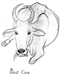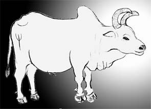 サブサイト「光らびた村」のパッタマンガラム村で居候していた屋敷の前の家で飼われていた卑しい雌牛。