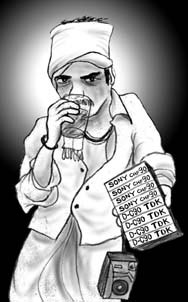 酔っぱらいのカセットテープ売り。ラジオは売り物ではありません。