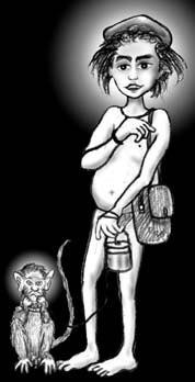 マドラスにほど近いマーマッラプラム(Mahabaripuram)のバスST.で見かけた猿使いの少年。