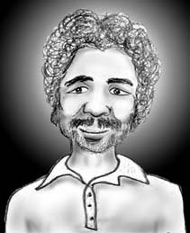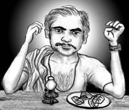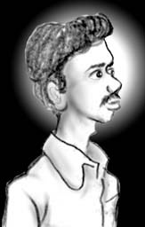 | 似顔絵を描いたら、クマールさんは感激してコーヒーを一杯おごってくれました! 先月の酔っぱらいとは大違いです。 | 女性スケッチ2000-03に登場したカニヤークマリのタバコ屋のお婆さん=Chellambalamさんの息子さんです。 |