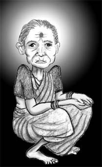 20年前、夫とともににマハバリプラムからマドラスに来て以来、苦労してきたのでしょう、一見すると60歳くらいに見えてしまいます。右足の指にはめているのは結婚指輪ならぬ「結婚足輪」です。彼女の絵をレタッチしていたら、なにか涙がこぼれてきてしまいました。今も元気で暮らしていることを祈ります。