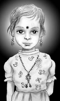 カルヤーニちゃんは、やはりパッタマンガラム村の結婚式で出会った少女。珍しい襟元の可愛い衣装は、シンガポールあたりで買ってきてもらったものでしょうか。 |