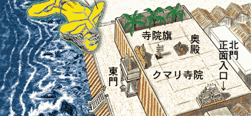 沐浴場に向かう人々は、この門塔をくぐらず、まっしぐらに岬へ向かう。