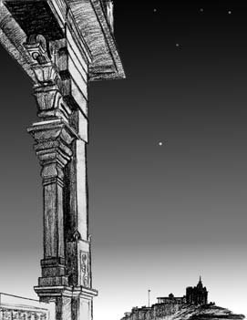 岬広場のSHANKARA記念堂のたもとから眺めた未明のロック・メモリアル。明けの明星金星が曉の空に次第に吸い込まれてゆく。
