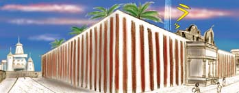 ヒンドゥー寺院の壁には紅白の縦縞模様がペインティングされています。日本ではオメデタイ場に紅白の幕が張られますが、いったいルーツは何なのでしょうか。葬式の時は白黒の幕だし、両方ともなぜ縦縞なのでしょうか。知っている人がいたら教えてくださいね。インドの寺院は英語でTempleと訳されるけど、本来は神様を祀る「神社」なのです。オメデタイ場所なんですよね。