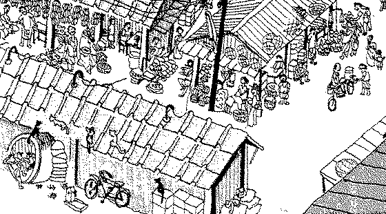 これも午後3時少し前の市場東南部のシーン。店の裏手で昼寝している従業員がいる。猫も何匹かいて、屋根の上でくつろいでいる。