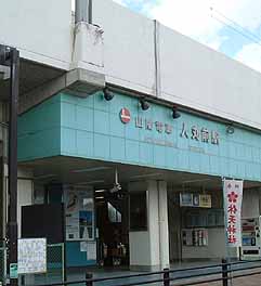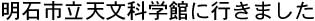 兵庫県の明石市にある「明石市立天文科学館」に行きました。同科学館は子午線※の真上に建てれています。「時と天文」をテーマにした科学館。塔頂には大時計があり、郵政省通信総合研究所から発信されるJJY時報を受信していつも正確な時刻を知らせています。 写真は一番の最寄り駅である三陽電鉄「人丸前駅」。ここから徒歩3分。JR明石駅からは徒歩15分ほど。 ※子午線は後のページで説明しています。 |