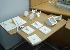| 4階には天文サロンと呼ばれる資料室があります。専用の端末で天文や時の科学を勉強。右の写真は日時計の仕組みを理解するミニチュア。夏休みの宿題にもってこいですね。 | |
