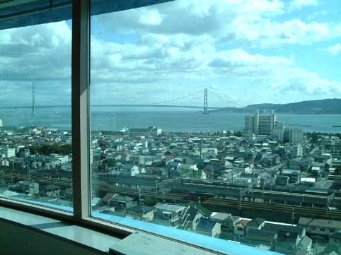 | 同科学館は小高い土地に建っています。塔に昇らなくても瀬戸内海と明石大橋を望むことができました。 |