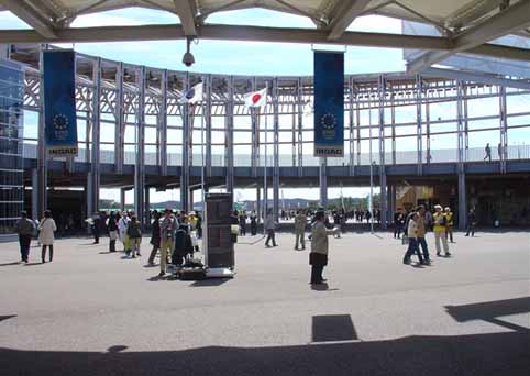 | この日は出展企業の関係者や報道関係者のための内覧会。一方、主催者や出展者も本番のシミュレーションを行うために設けられた日でもありました。詳細は伏せますが、複数のパビリオン、移動機関で色々な事故を目の当たりに。本番1週間前ですが大丈夫でしょうか。 |