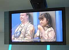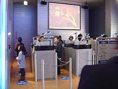 | 次は遊園地のようなアトラクション。乗物にのってバーチャルな自然の中を探検。紹介ビデオにある双眼鏡のような道具を使うと眼前にバーチャルな動物が現れます。さらに自分の手で触って動かすことなどもできます。 |