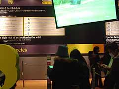 | 歩いて進むパビリオン内、各所にあるマークに端末をかざすと希少動物の情報が取りだせる仕組み。 |