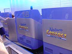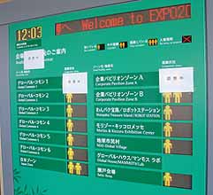 | 改札機のような機械に通して入場。液晶でモリゾーとキッコロがお出迎えです。 |