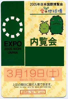 | 内覧会用のチケットです。ICチップが内蔵されており、様々なパビリオンで使用。汚したりなくさないように。 |