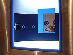 | 3D映像を見る前に別のモニターで鉄道の歴史を勉強します。ここから先は撮影不可。 |