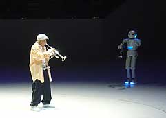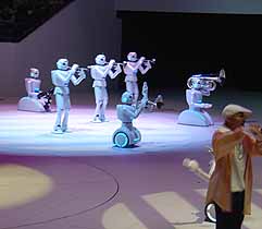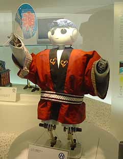| パビリオンの外には“お祭りロボット”が展示されていました。ロボットが普段の生活の中にいる時代は目の前かもしれません。 |