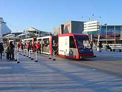 | グローバル・ループ上でも乗物が運行。グローバル・トラムと呼ばれる連結バスは乗車料500円。 |