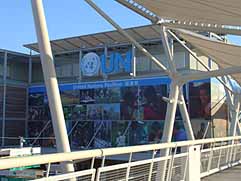 | 国連もパビリオンを出展。マルチ画面のビデオ・アートなどを展示。 |