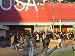 国別のパビリオンは比較的、入場がスムーズなのですが、さすがアメリカ館は人が並んでいます。 それでは入場してみましょう。 |