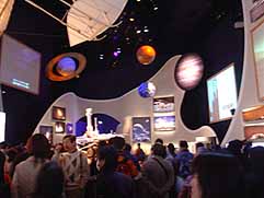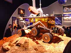 | 今も昔もアメリカは「宇宙科学・宇宙技術」をPR。「月の石」を探しましたがありません、、、。実は「月の石」は会場中央にあるグローバルハウスにあるようです。残念! |