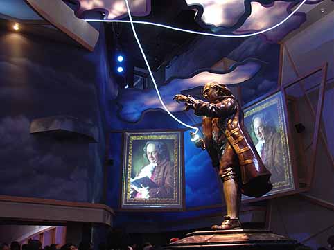ここでもベンジャミン・フランクリンが登場。単なる映画ではありません。面白い仕掛けが次々と。 さすがエンターテイメントの国です。企業パビリオンに負けない内容でした。 |