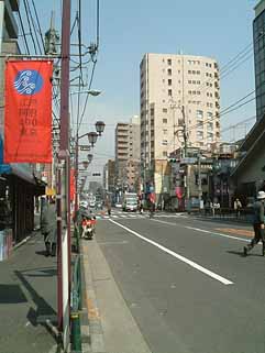 | 不忍通です。2003年は江戸開府400年とのことで、左上の記念フラッグが方々ではためいていました。 |