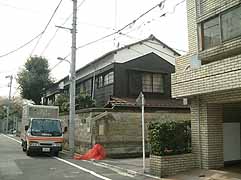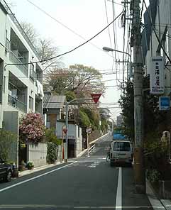 | 根津神社入口の交差点を根津神社とは反対方向(右折)に歩きます。閑静な住宅街ですね。このあたりの町名は谷中町。 |