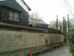 | 立派な壁に囲まれています。豪農の屋敷の雰囲気。随分と広い敷地です。黒い建物は住まいのようですが、、。 |