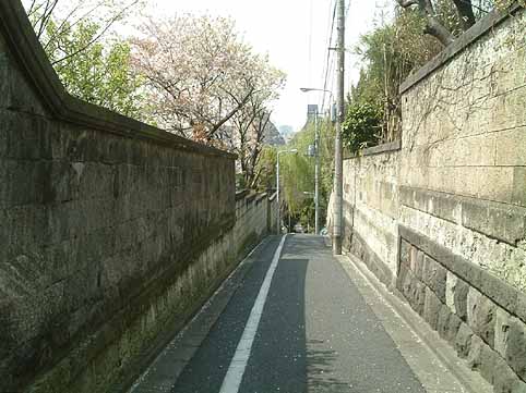 | 帰りは屋敷の東にある「三浦坂」を下ります。勝山藩主(幕末慶応の頃に藩名を真島藩と改めた)は三浦氏でこの名がついたそうです。私が歩いたときには名も無い裏道の坂だと思っていましたが、とても雰囲気が良かったのでシャッターを切りました。後になって調べるとやはり由緒ある有名な坂だったようです。 |
