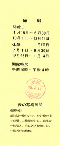 | 館内では大名時計博物館報(バックナンバー)なるものが売っていました。今は廃刊(休刊?)になっていますが、上口愚朗翁の御子息、等さんを発行人に和時計修理職人や同好の知識人などの寄稿で編集。非常に限定された趣味の世界ながら、興味深い記事がたくさん。あるだけ全てのバックナンバーを購入しました。 |