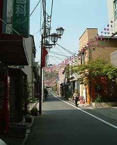 | 道を戻り、根津神社に立寄りたいと思います。写真は不忍通りの根津神社入口の交差点から根津神社方面(博物館とは逆方向)を見たところです。 |