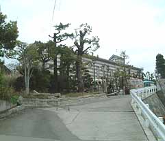 | しばらく歩くとそれらしい建物が。ここが福山自動車時計博物館かな? 坂をのぼって近づいてみます。 |