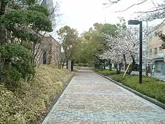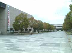 | 左は広島県立歴史博物館。瀬戸内海の歴史と文化を学ぶことができるとのこと。正面はふくやま美術館。この通りをまっすぐ進みましょう。 |