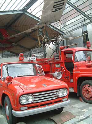 | 収蔵車庫でした。修理中の車や展示物を収納しているようです。一般公開はしていません。 |