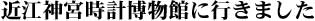滋賀県大津市の近江神宮・時計博物館に行ってきました。天智天皇の時代に都があった大津京は日本初の時計「漏刻時計」が造られた“時の都”。このことから近江の地は「日本の時報制度発祥の地」とも言われます。天智天皇が祭られる近江神宮の境内には漏刻時計や古代火時計が置かれ時計博物館も併設。時計ファンとしては一度は訪れたい地ですね。 JR大津駅から京阪石山坂本線の島ノ関駅までは徒歩15分程度。写真の電車に乗って近江神宮席前に向かいます。 |