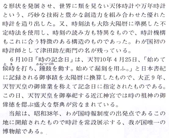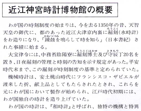 | 漏刻時計は水時計で下に漏れ落ちる水の量で時間を計ります。天文台と併設され時間の管理とともに天文観測、歴の作成にも役立ちました。平安時代までは国の時刻制度は漏刻時計に頼っていたそうです。 |