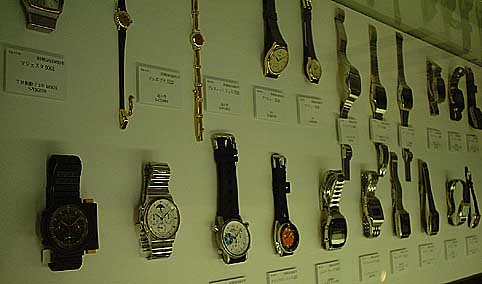 | 80年代以降のクオーツモデルもしっかり紹介。手前にはジウジアローデザインのクロノグラフが見えます。 |