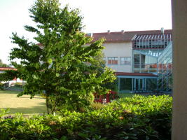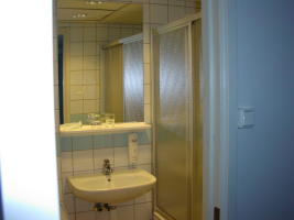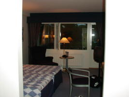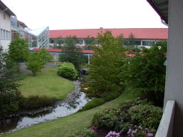 あと、インターネットもできたのでやってみたんだけど、 Gooのフリーメールはできないは、うちのホームページに書き込みもできない。(^-^; (日本語フォントがないとCGIも使えないのね〜) 会社の金だけど無駄金使っちまったな。 なんか今日は酒飲んでだらだらしただけの一日だったなぁ。 なにはともあれ14時間の長旅、おつかれでした。 さーて、明日からが本番だ。 とっとと終わらせてあそぶぞぉ!(爆) 6/25(月) 今日は朝は曇っていたけど、昼からはむっちゃいい天気。 日差しは弱いけど、紫外線は強そうでした。 昼飯はホテルにて。 ベーコンとポテトのシチューがけ、ってかんじの食事でした。 デザート代わりにジャムがのっていたのは驚きでっす。 こちらではこれが普通だそうな( ̄△ ̄#) 結構イケたけど、クリームシチュー風のソースとベリー系のジャムのミックス・・・ かなり勇気が必要かも(笑) 晩飯のとき隣の席になった年輩の夫婦がうるさそうに別の席に移っていった。 アジア人は嫌いなのかな? ヨーロッパ(特に北のほう)はこーゆーのが有るんだよな。 ふう。 (学生の時にヨーロッパに行ったんだけど、やっぱし同じ様なことがあった。 イタリアでは無かったんだけど) こういう時に「人種差別」はまだ残っているのかもな・・・と思う。 明日中に仕事が終わったら、コペンハーゲンまで遊びに行けるかな? たのしみたのしみ。 仕事なので遊びに行けない・・・ ホテルの中の写真のみ〜ヽ(;▽;)ノ