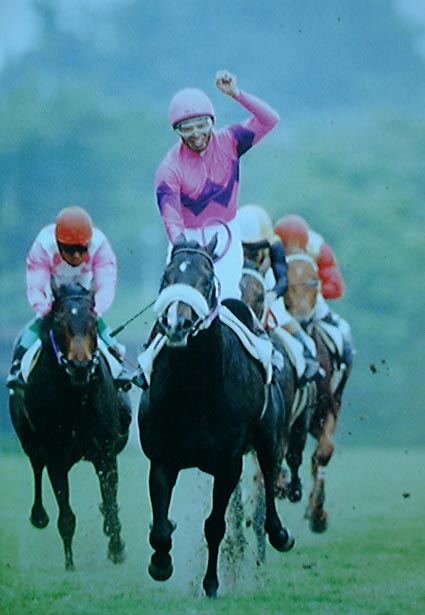 栗東の坂路が産んだ最強の逃げ馬。三冠目の菊花賞で、関東の刺客ライスシャワーに敗れる。獲得賞金5億2596万9000円