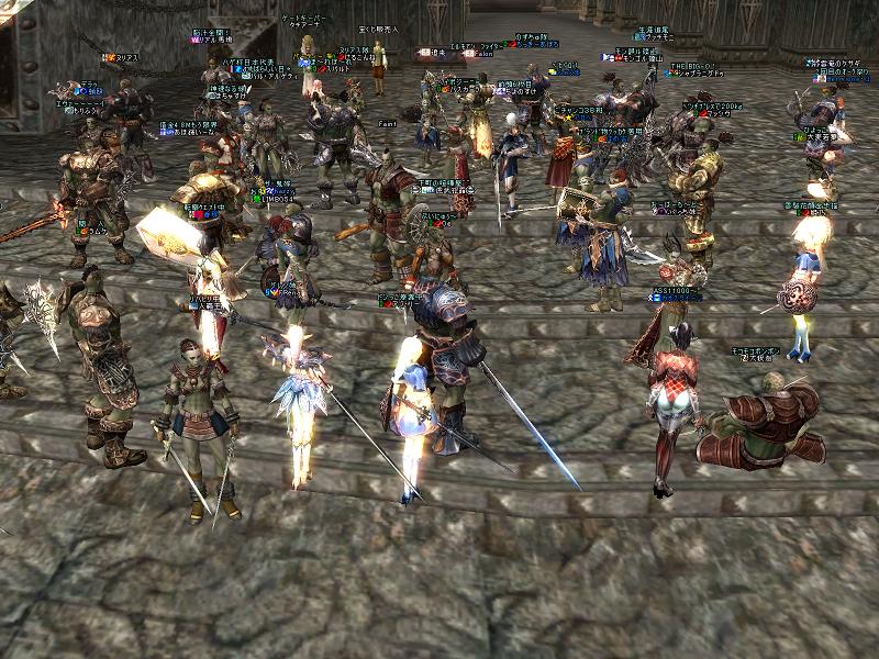 先月がやたら人数来なかったので、狩り祭りでちょうどいいだろうとタカをくくってギランの集合場所へ行くとなんと50人近くが!今月はえらい多いやんけぇぇぇ!先月企画がこってただけに残念でならぬっ!50人でスリリングな狩場なんてありませんよ・・スベテが瞬殺に・・!もうこれは火鉢で全滅プレイしかないのか?しかし・・やってみなければわからん!名前は忘れたが、ギランで祭り援護いきますよ〜というビショさんにきてもらう。