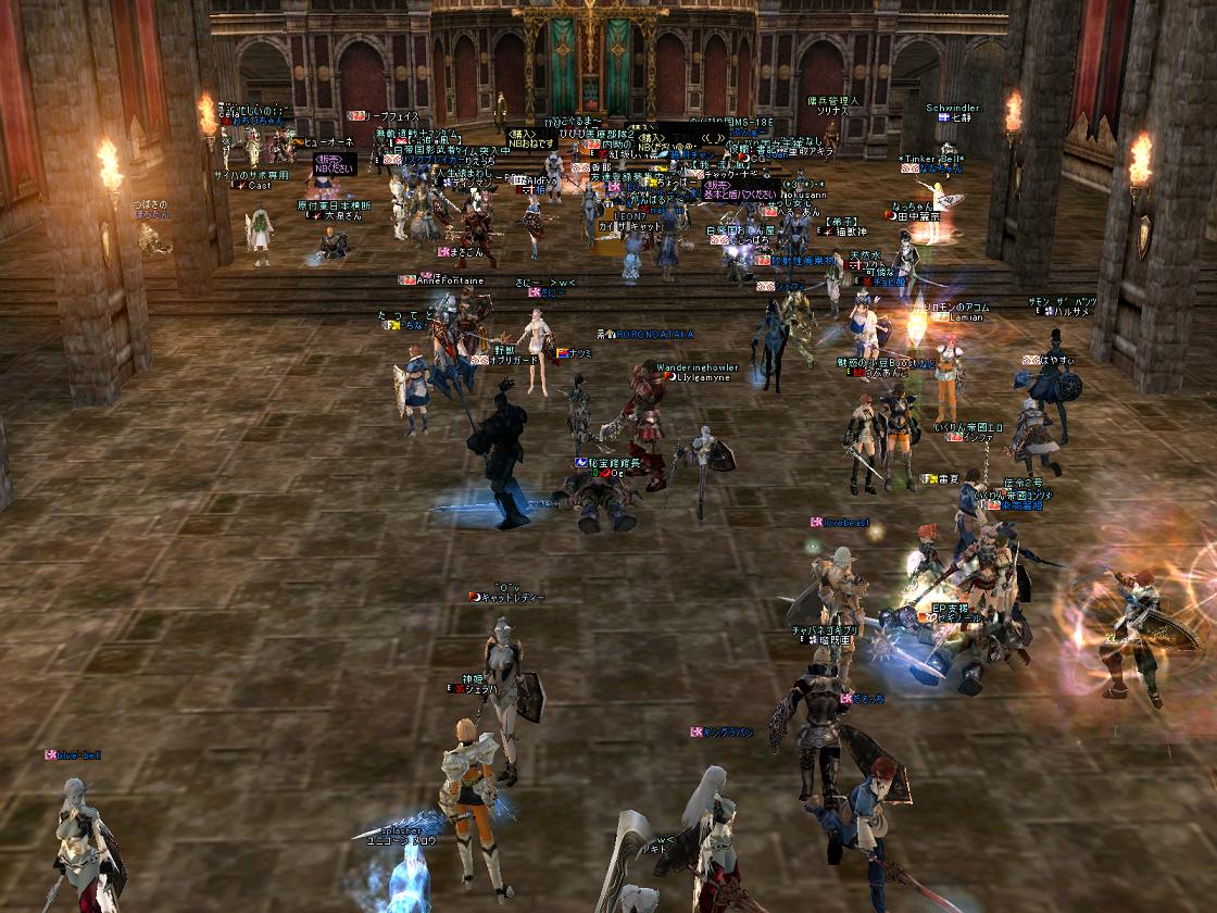 とんびがアブラアゲをさらうような話であるが、まぁそういうこともあるらしい。多分敵も時間的に交感できないと思ったか、まぁグルはいいよってことなのかもしれないな。どっちにしてもなかなか楽しい闘いであった。戦争もたまにはイイね!んで最後は玉座の間で宴会。健闘を称え、防衛盟主が挨拶などして解散。