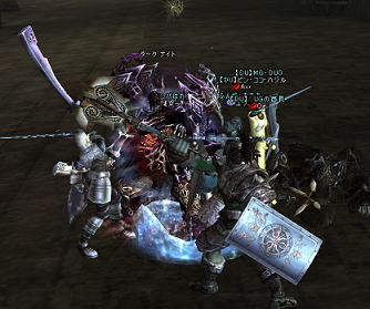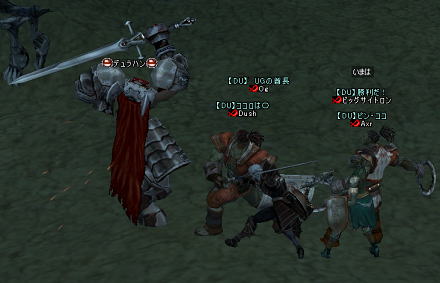 出だしは順調であった。幾人かのヒーラー・メイジ・バッファなどに声をかけておきマーティや那地などの援護隊をPTに組み込むこともぬかりは無く、わがダークユニオン部隊もビル・アンさんをはじめ姫埜・サイトロン・スパルトなど、AxrやハジっさんそれにDushは居ないものの十分な顔ぶれがそろい、破壊力回復力に不安はない。そしてこれにボンビン・グランデパール姉妹などのWCを補いまさに攻防に隙なし。さらにさらに鬼龍丸とお笑い担当の素敵なモッコリ(注・・レベル1ですw)をも加え、これ以上ない布陣で挑んだのだ。嗚呼それなのに・・・くぅぅ・・・!