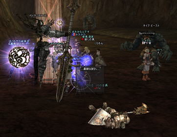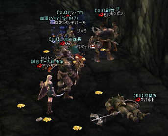 仇敵イササカ先生の撃破である。さすがに人数十分でヒーラー完備となると先生ももはや物の数ではない・・・といいたいところだが、確かよこからべアラー一味が乱入してきて魔女の方のいくりんがピンチに陥ったような気もする。C2からはリンクの処理を間違うと本当に装甲の弱い後衛が召されてしまうようになったようだ。ちなみにこの後DVCへ行くもののそのあまりの硬さに(ケイブビーストなのに!)撤退を余儀なくされる。う〜んダンサーほしいw