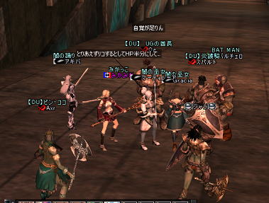 といってもこの場合、生き延びるかどうかというのは大した問題ではない。ようは死んで装備品をドロップしてしまうのが問題なのだ。コンポジット鎧など落とせばそれだけで2m近い損害となる。えらいこっちゃ。だから別に俺らがMPKしてもいいのだが、やり方がわからない。FD使いも居ないし。WCのKeizerが「混乱させればいけるのでは?」といったが、それもよくわからん。といって物理的にどつけば俺らが真っ赤になってしまうので論外だ。