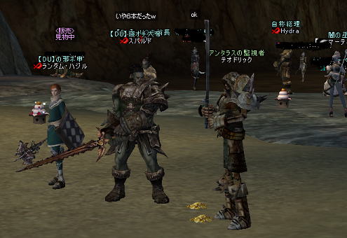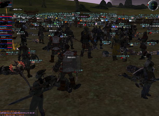 Axrはなんとかリスタで逃れたが、PTはまさにかつてないほどの壊滅ぶり。あまりにも美しすぎて逆にすがすがしいほどであったwその時みんなの心に去来したものはなんであったろうか・・・わちは(アンさんが居れば・・)であった^^;だがこれほどの壊滅ぶりで遺品が全くなかったのは不幸中の幸いだったといえる。結局この日はハジルたんはリネに戻ってこれず、致命的なマシントラブルがあるようだということであった。やはりチャイなな人たちはその後ハイエナのようにうごめいていた。