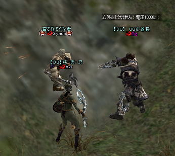 明日はオーク祭りだというのに久々にPKに出くわしてしまった。場所はハーディンの私塾。まーちーの友人イビス・ベニスズメらの誘いで巨人へタンカー&アタッカー役をやりにいき、いくりんらとシルコアさがし、ソウル石上げなどをして朝方オーク祭りのためにギランへ移動して落ちておこうとしていた時の事である。いい加減ネムネムもいい所だったので、漁師からてきとーにハーディンまで飛び、そこから帰還しよ〜としたときいきなりビシビシッ!と言う鈍い音が。一瞬何かわからず(GK使用後は画面に現れるまで若干反応が遅れるのです)そばを見ると真っ赤いけな人が殴って来ているではないか。ていうかもくもくとモータル撃ってくるしwその一途な姿勢にラヴ。
