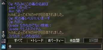 レベ4クエは盟主は仕事がない。ただここで毒を飲んでヒル姉さんの手厚い看護をうけつづけるだけでみなの活躍は妄想するしかない。。写真では結構冷たいことを言われているが、まぁミスクリ(誤診)だろう。