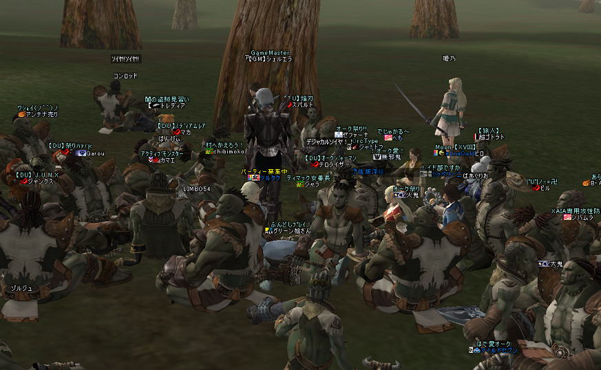 ほっといても蘇生はありえない(というかPTにヒーラー居ないしね)ので各自の健闘を祈る!とばかりにPTを解散し、あとは個人の武勇で挑む事にする。まぁこのへんがもうリネの常識でいうと全滅するパターンなのだが・・・なんとわちが寝てる間にも兄弟は死んではゾンビのごとく蘇りソイヤ!!ソイヤ!のかけ声でとりつかれたようにHPを減らし続け、見事撃破!に成功したのだ。いや〜かなり感動しましたwまぁ結果的に倒せたからいいのだが、あまりにも死にまくるようだと、祭りではなく”死にマニアツアー”になってしまい参加者も当然減るってことになりそうなので、その辺の見極めが重要だな、とは思った。特に遺品など奪われると引退につながったりするのでいくらオーク祭りがノリ重視とてそのへんの配慮を欠かしてはならんってこと?なのだべ。